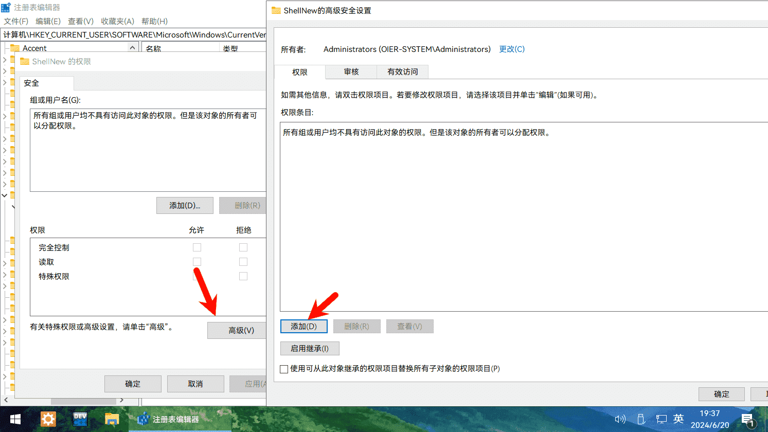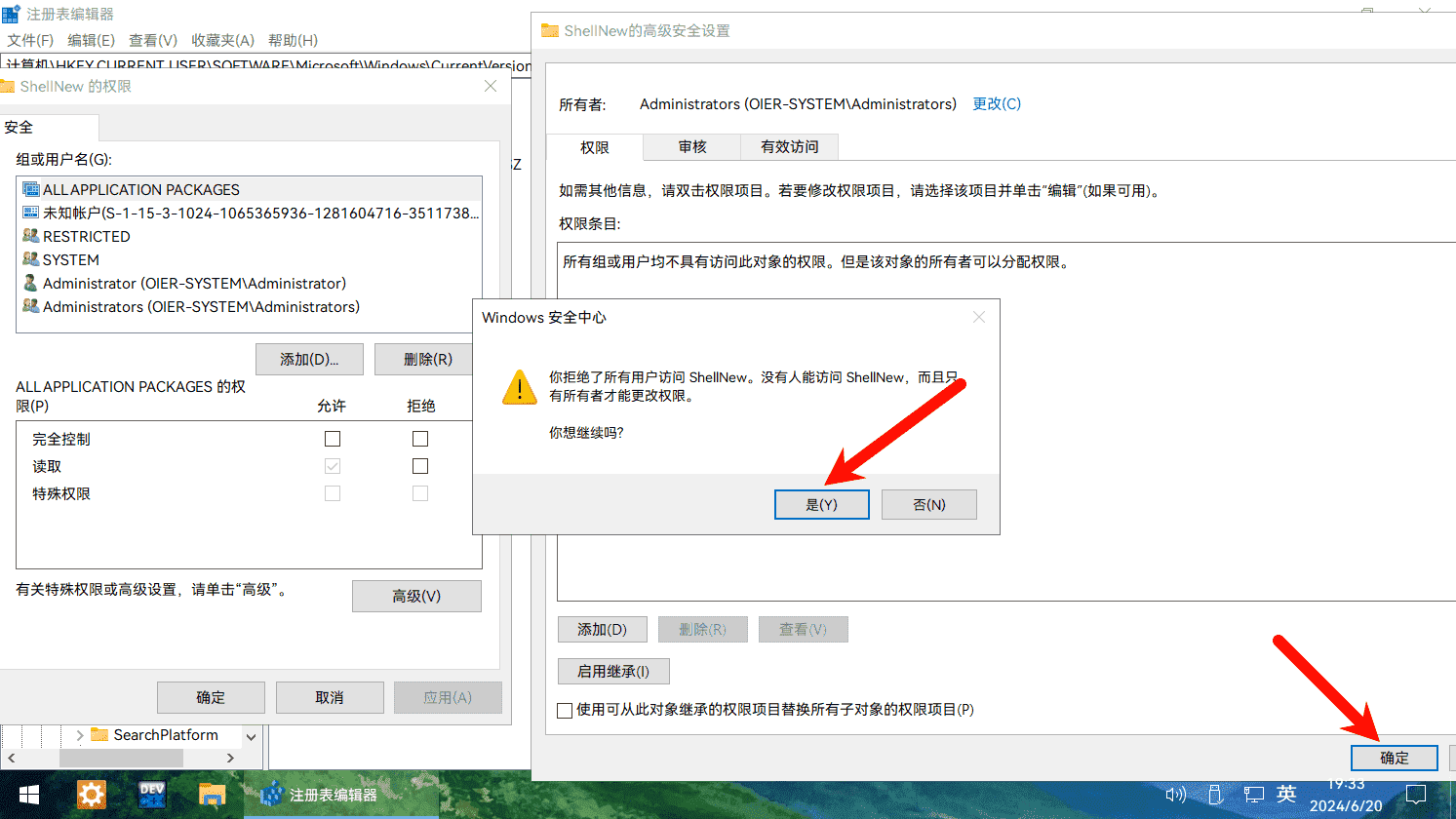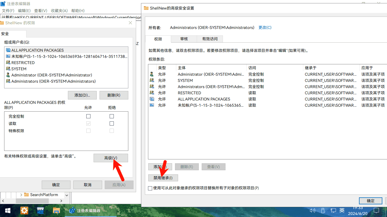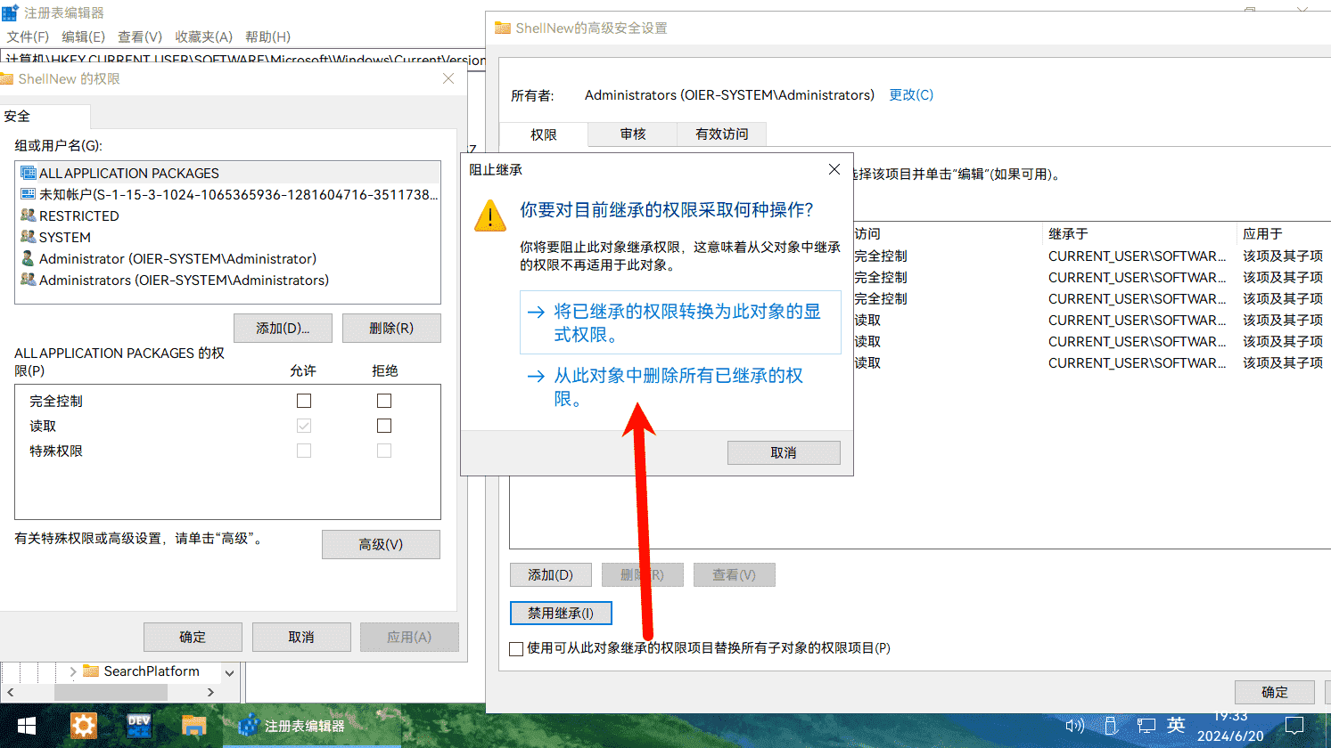 你刚刚做出的修改可能会被系统修改回去。为此需要禁用继承。