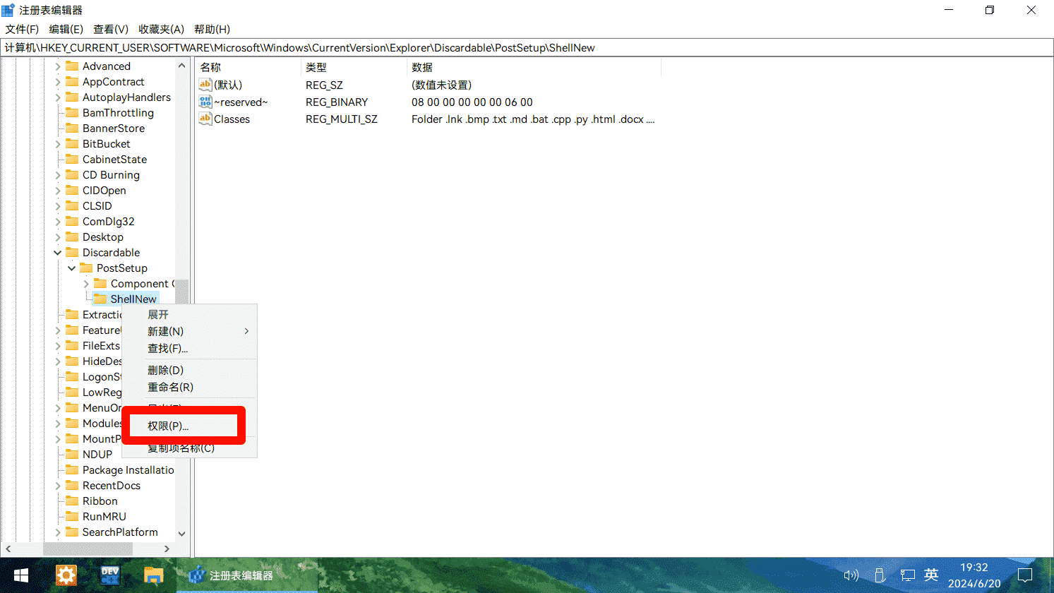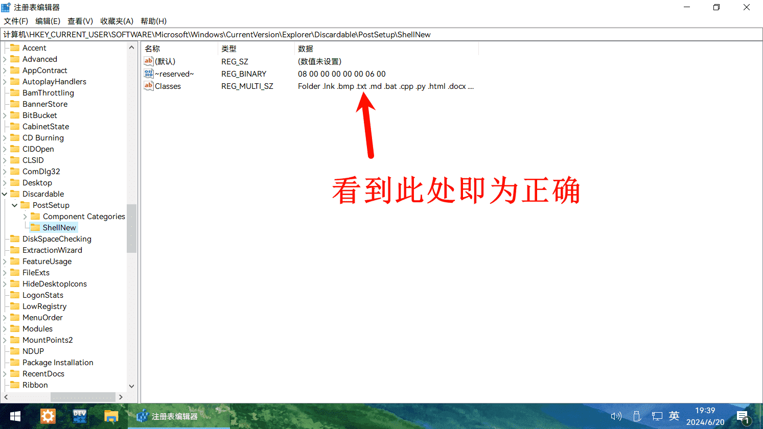 1 | HKCU\Software\Microsoft\Windows\CurrentVersion\Explorer\Discardable\PostSetup\ShellNew |